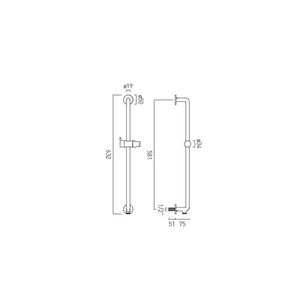 Vado Elements Slide Rail Kit With Twist Control 900mm - Chrome