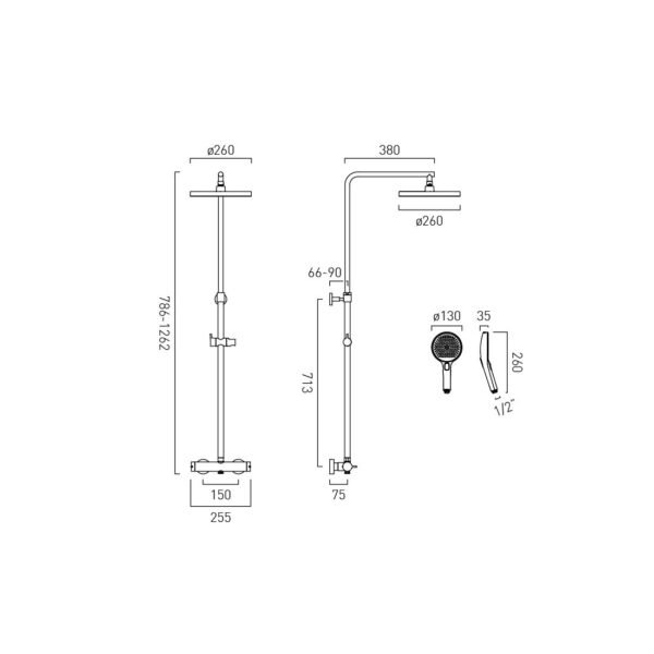 Vado Cameo Wall Mounted Thermostatic Exposed Shower Column