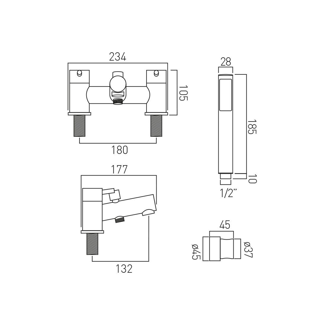 Vado Zoo Deck Mounted Thermostatic Bath Shower Mixer Tap - Chrome