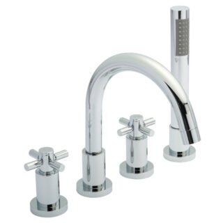 Hudson Reed Tec Crosshead 4 Hole Bath Shower Mixer Tap With Shower Kit And Hose Retainer – Chrome