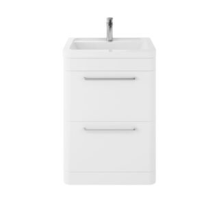 Eastbrook Hardwick 2 Door Floor Standing Vanity Unit With Basin – 600mm Wide – 1 Tap Hole – Matt White