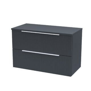 Hudson Reed Fluted 2 Drawer Wall Hung Vanity Unit With Worktop – 800mm Wide – Soft Black